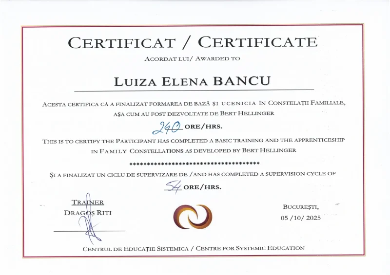 Certificări Luiza Niță Loading Images Profesor Meditatie Luiza Elena NitaProfesor Respiratie Luiza Elena Nitacertificat de absolvire supervizare constelatii de familie resultConstelatii de Familie Luiza Elena Bancu